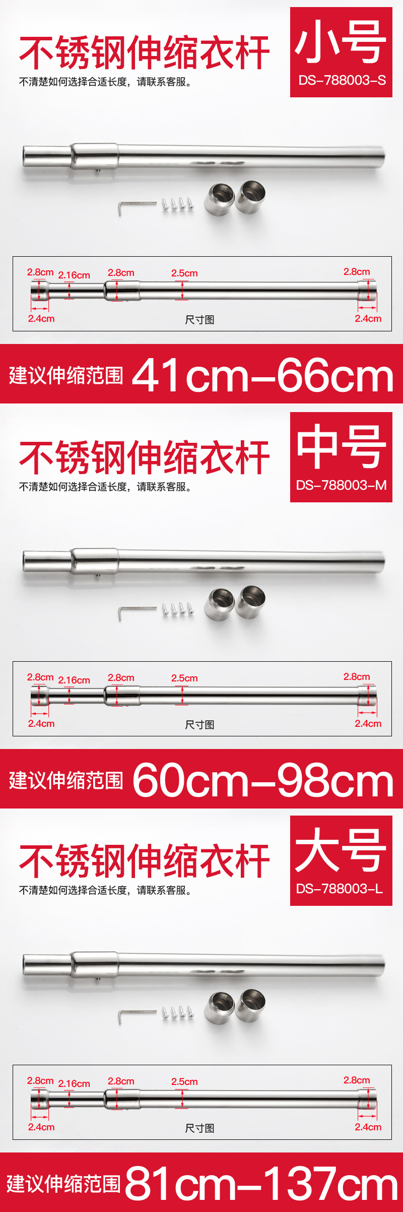 DS-788003-S/M/L 不銹鋼伸縮衣桿