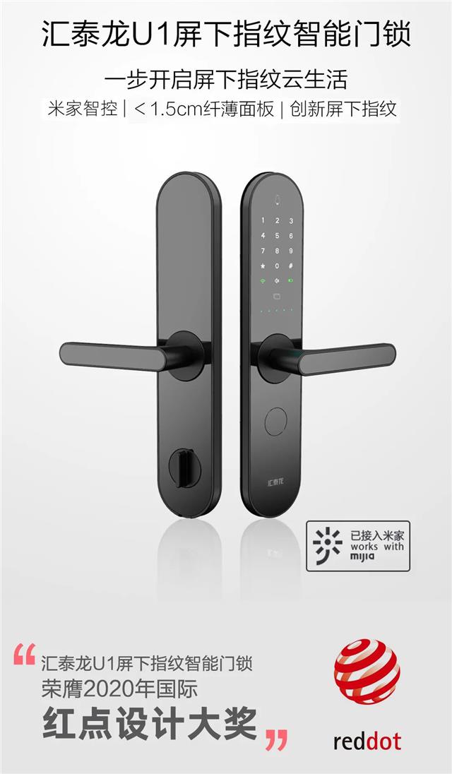 匯泰龍U1纖薄屏下指紋智能鎖應(yīng)運(yùn)而生,U1屏下指紋智能鎖,以Ultra thin(超?。┡cUnder Glass(屏下指紋)為設(shè)計(jì)理念,擁有<1.5cm厚度的炫酷面板外觀、屏下指紋、米家智控、五種開鎖方式、十五重安全防護(hù)等黑科技、安全的功能,榮獲“德國(guó)紅點(diǎn)產(chǎn)品設(shè)計(jì)獎(jiǎng)”。