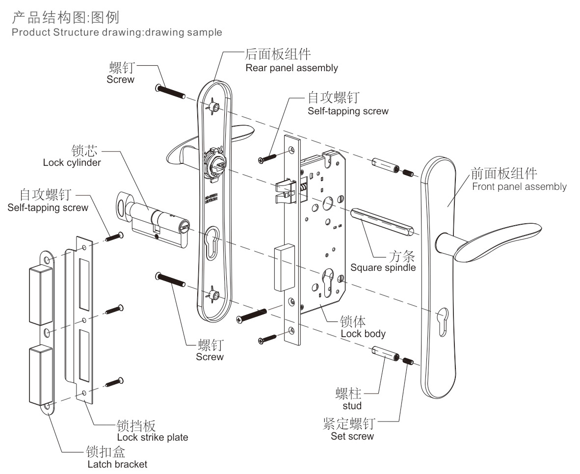 6擰緊螺釘,安裝扣板及扣盒,對(duì)齊鎖體,應(yīng)使鎖舌與之配合順暢,擰緊螺釘(如上圖:H)。