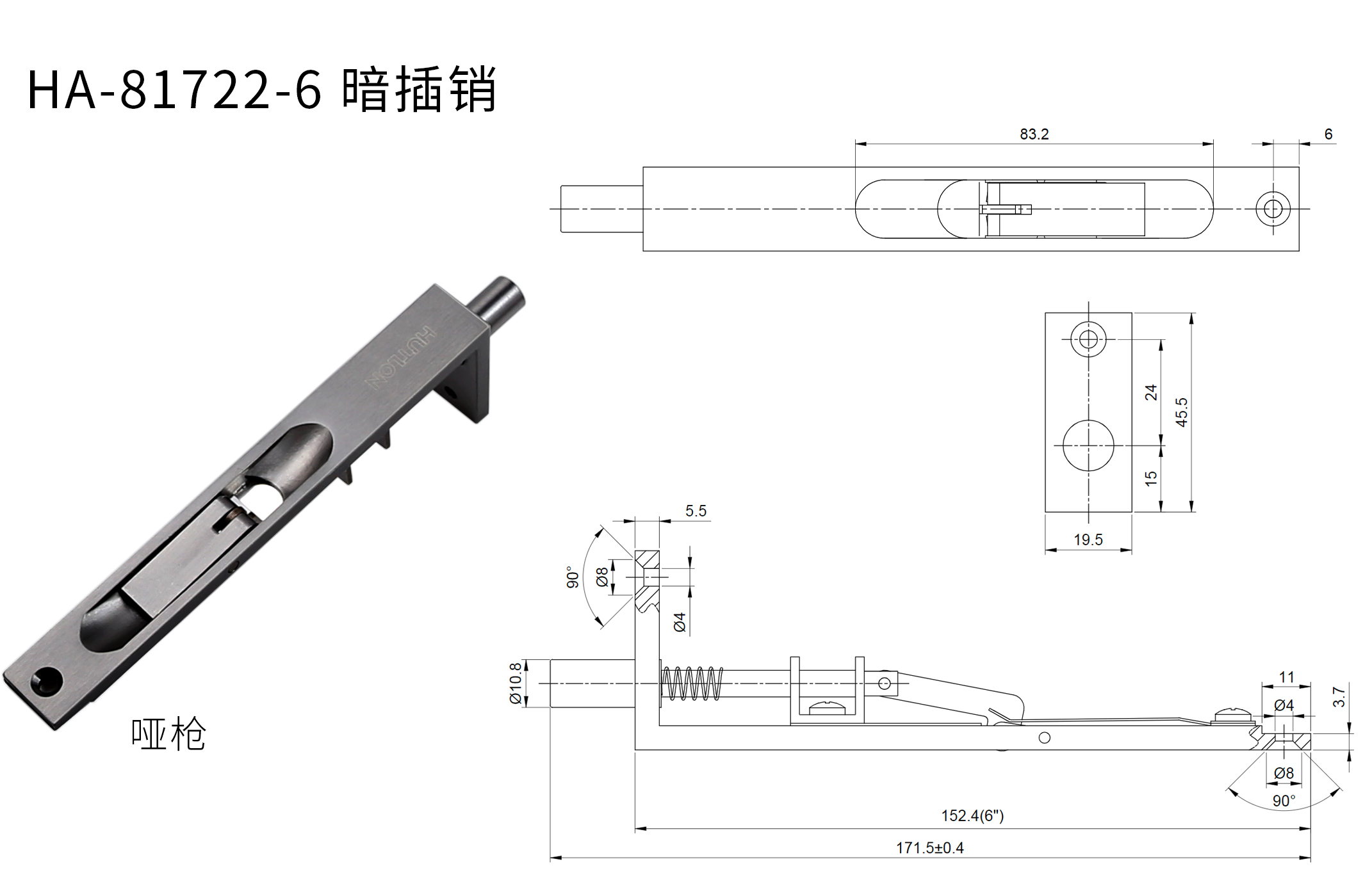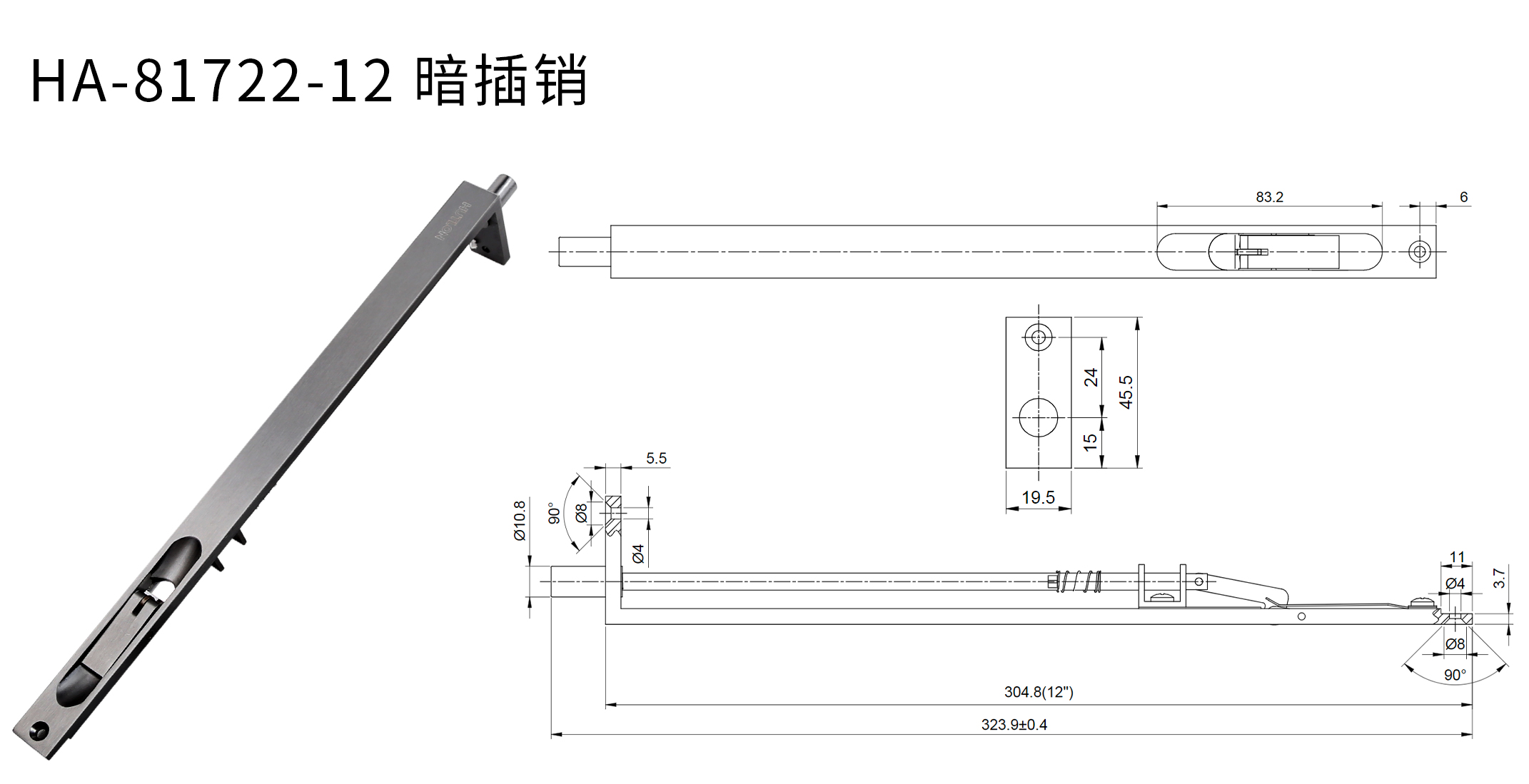 6寸插銷安裝于門扇下側(cè),12寸插銷安裝于門扇上側(cè)