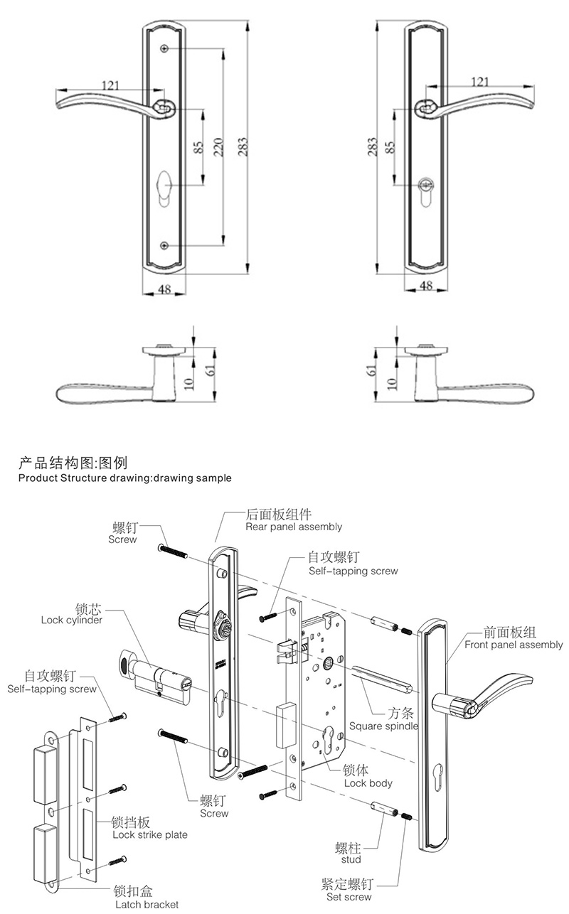 4安裝內(nèi)外面板,使把手轉(zhuǎn)動(dòng)順:擰緊螺釘(如上圖:E-F)。