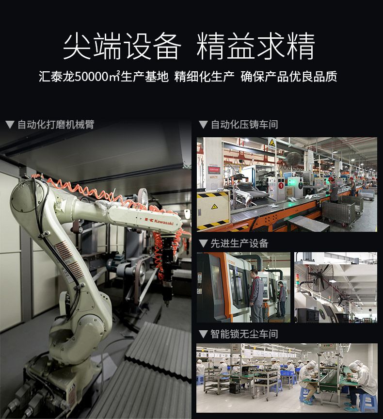 為確保產(chǎn)品優(yōu)良品質(zhì),匯泰龍擁有50000㎡現(xiàn)代化生產(chǎn)基地,配備拋光除塵系統(tǒng)的全自動拋光設(shè)備、機械臂打磨、沖壓、壓鑄等大批現(xiàn)代化生產(chǎn)設(shè)備。