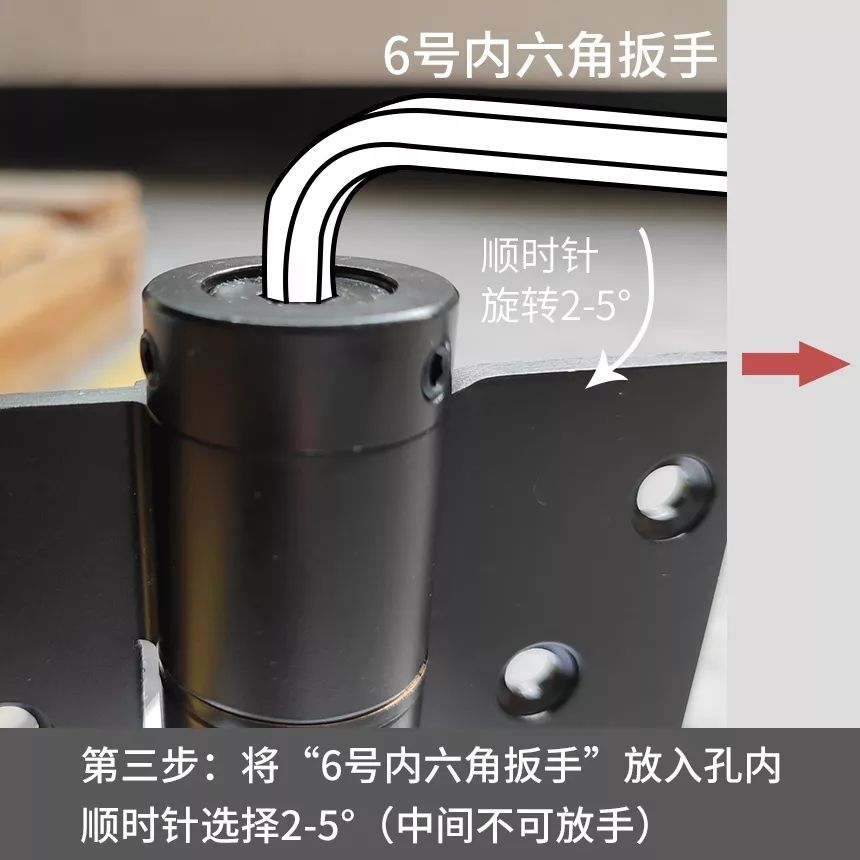完成上面的步驟,合頁的液壓功能即開啟,若定位角度過大,可重復(fù)第二步及第三步進(jìn)行調(diào)節(jié)喲~