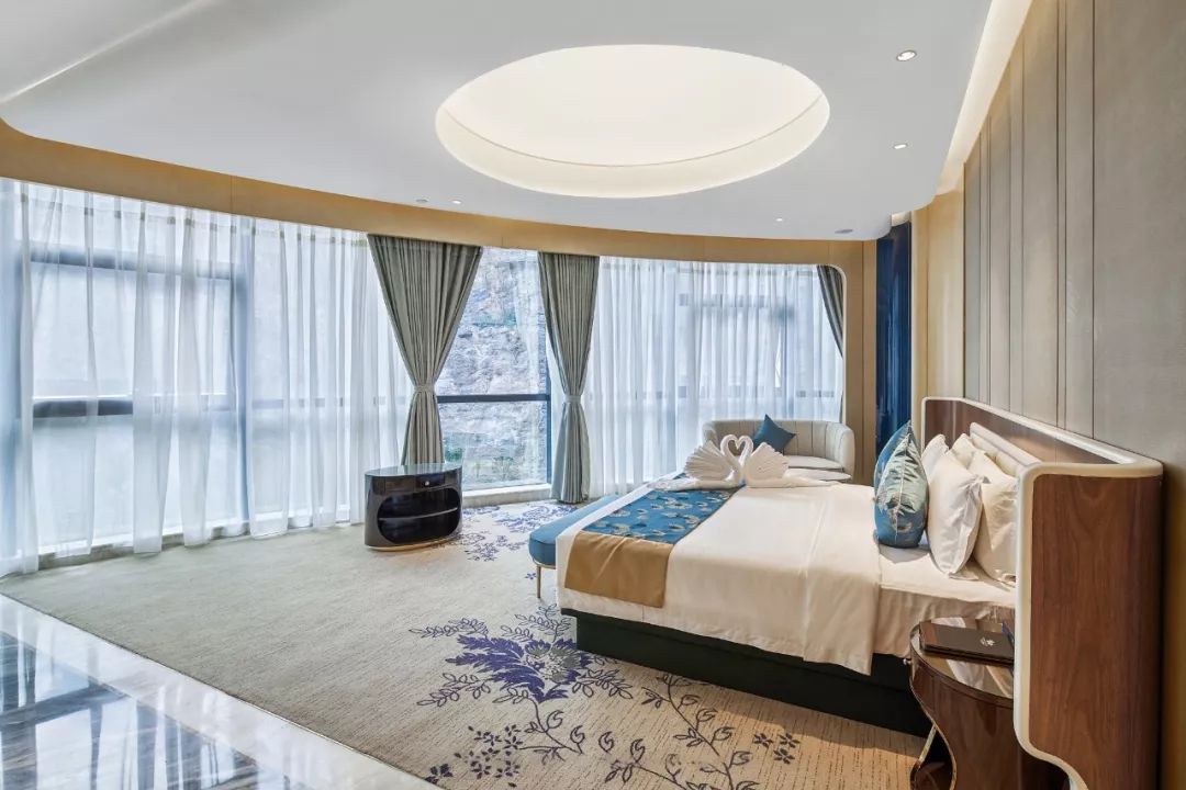 酒店擁有夢(mèng)幻親子主題房、行政房、豪華套房等數(shù)種特色房型,可欣賞老山森林風(fēng)景或一線城市景觀。