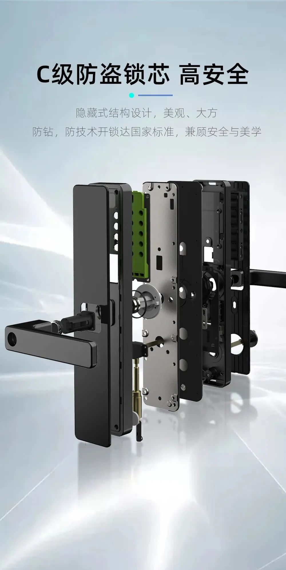 A8 pro旗艦智能鎖采用游離把手設(shè)計(jì),把手回彈后,二次下壓不可開(kāi)鎖,防止尾隨開(kāi)鎖。