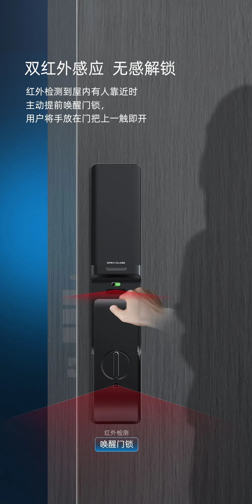 雙紅外感應(yīng)開鎖,無感開鎖