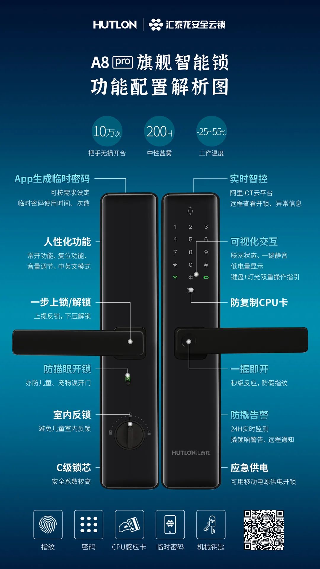 C級鎖芯+304不銹鋼鎖體+多重傳感器24小時實時監(jiān)測+防撬告警,匯泰龍A11智能鎖機械硬件與智能防盜兩方面“雙管齊下”,全方位護(hù)家,讓家更安全。
