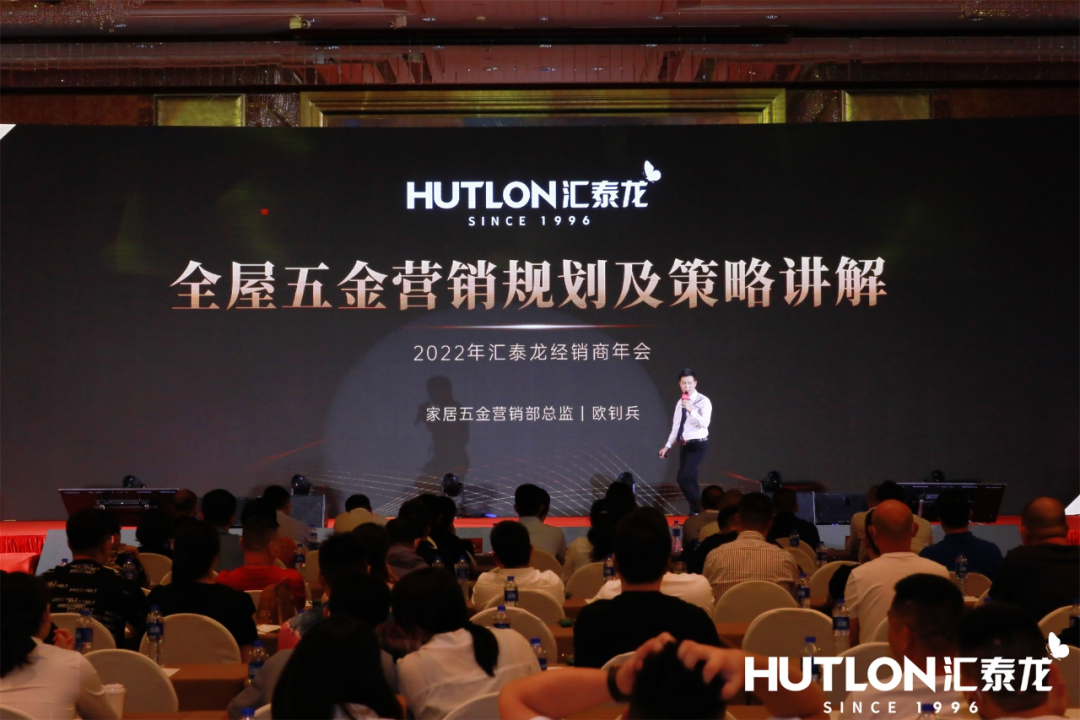 年會的壓軸,匯泰龍總裁陳鴻填發(fā)表《蝶變青春,逆勢飛揚(yáng)》主題演講。雖然疫情持續(xù),經(jīng)濟(jì)下行,原材料上漲等不利因素涌現(xiàn),但逆勢之下,勇者破局。陳總從品牌戰(zhàn)略、產(chǎn)品戰(zhàn)略、推廣戰(zhàn)略、營銷戰(zhàn)略四大維度,闡述破局關(guān)鍵?;谄放茟?zhàn)略升級,匯泰龍將繼續(xù)以高舉高打之姿,占領(lǐng)品牌高地:在全屋五金丨智能門鎖的基礎(chǔ)上,計劃開拓更多相關(guān)產(chǎn)品品類,為更多家庭帶來高品質(zhì)家居產(chǎn)品。匯泰龍進(jìn)一步落實(shí)傳統(tǒng)媒體+互聯(lián)網(wǎng)+新媒體+展覽館+設(shè)計師的融媒體推廣戰(zhàn)略,2022年,已開啟央視廣告、高炮廣告的投放,加大力度打造線上宣傳矩陣,增加專業(yè)展會的參展,發(fā)布年度品牌福利活動,打造大聲量的品牌宣傳,提升品牌知名度,為市場賦能,彰顯品牌實(shí)力。