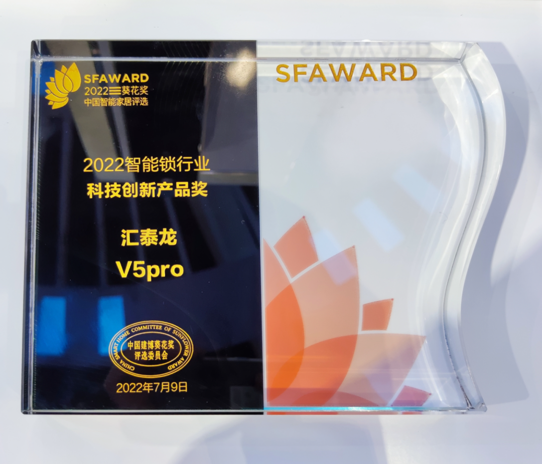 匯泰龍V5Pro獲“2022智能鎖行業(yè)科技創(chuàng)新產(chǎn)品獎(jiǎng)”