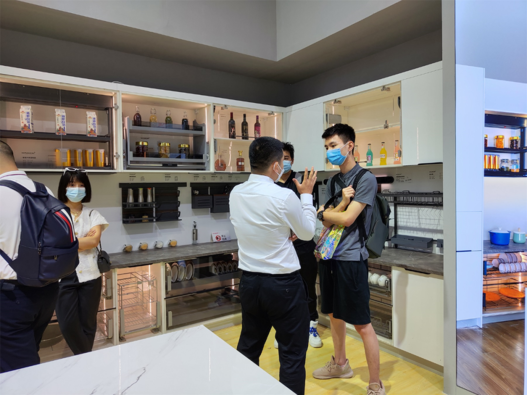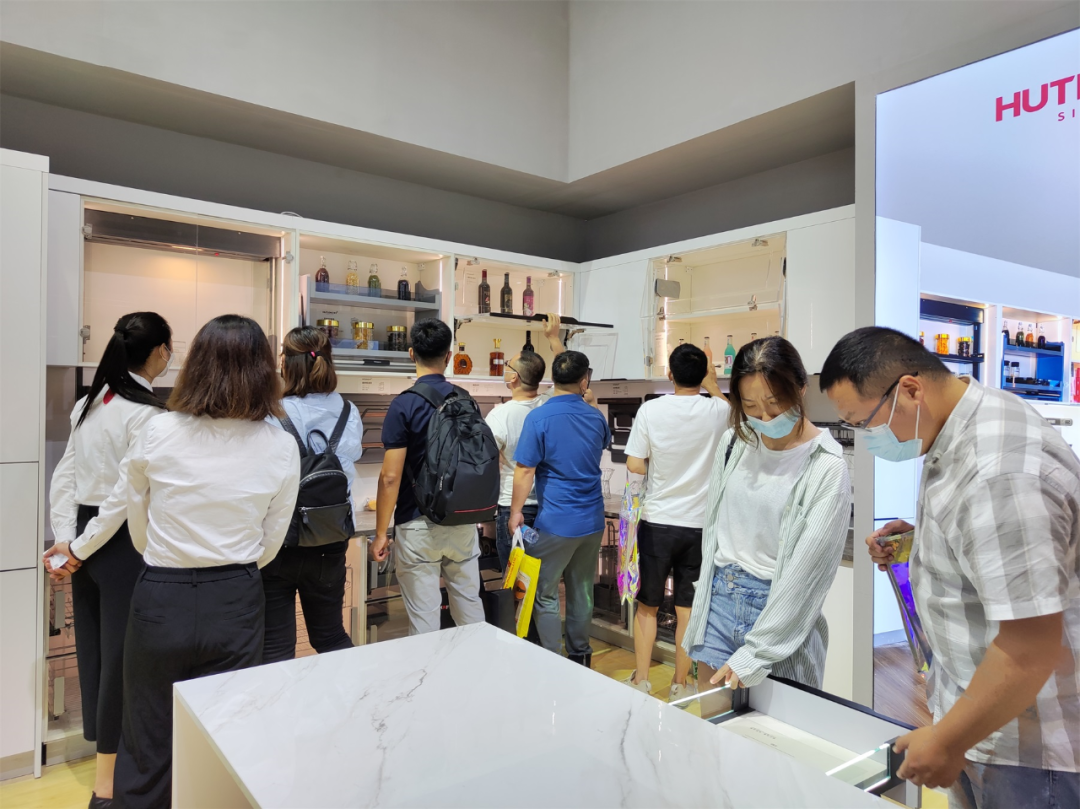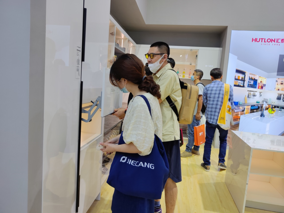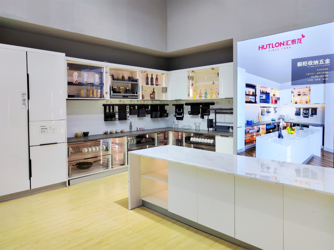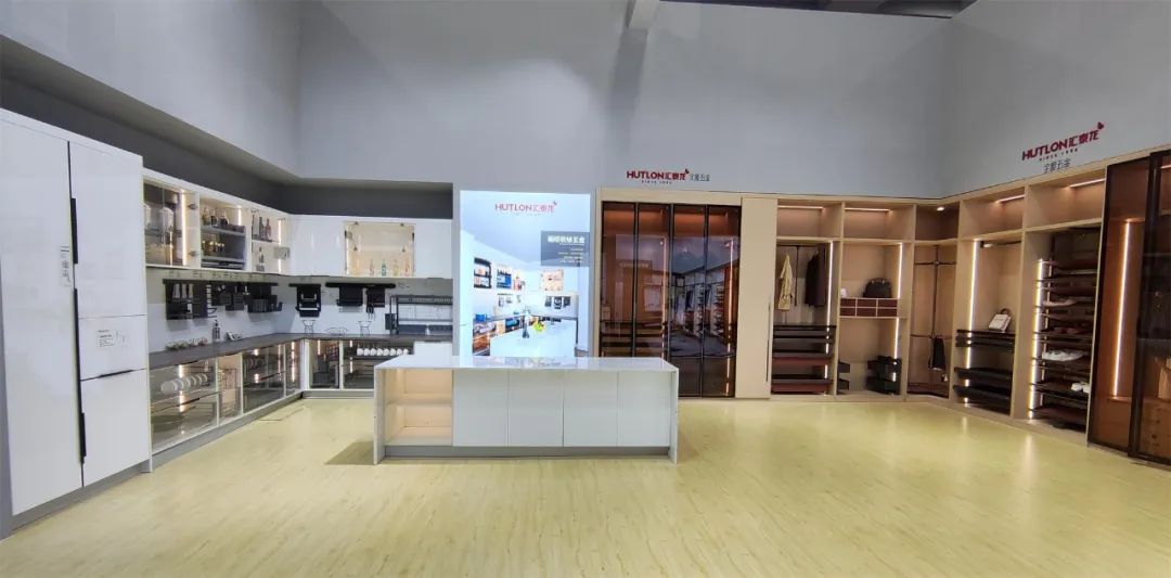 進(jìn)入展館首先到達(dá)匯泰龍定制五金沉浸體驗(yàn)專區(qū)。匯泰龍選取家居生活中,人們最為關(guān)注的櫥衣柜收納、智能五金,在展館中1:1搭建還原廚房、衣帽間等家居場景,打造理想家居的樣板,帶來沉浸式觀展體驗(yàn)。