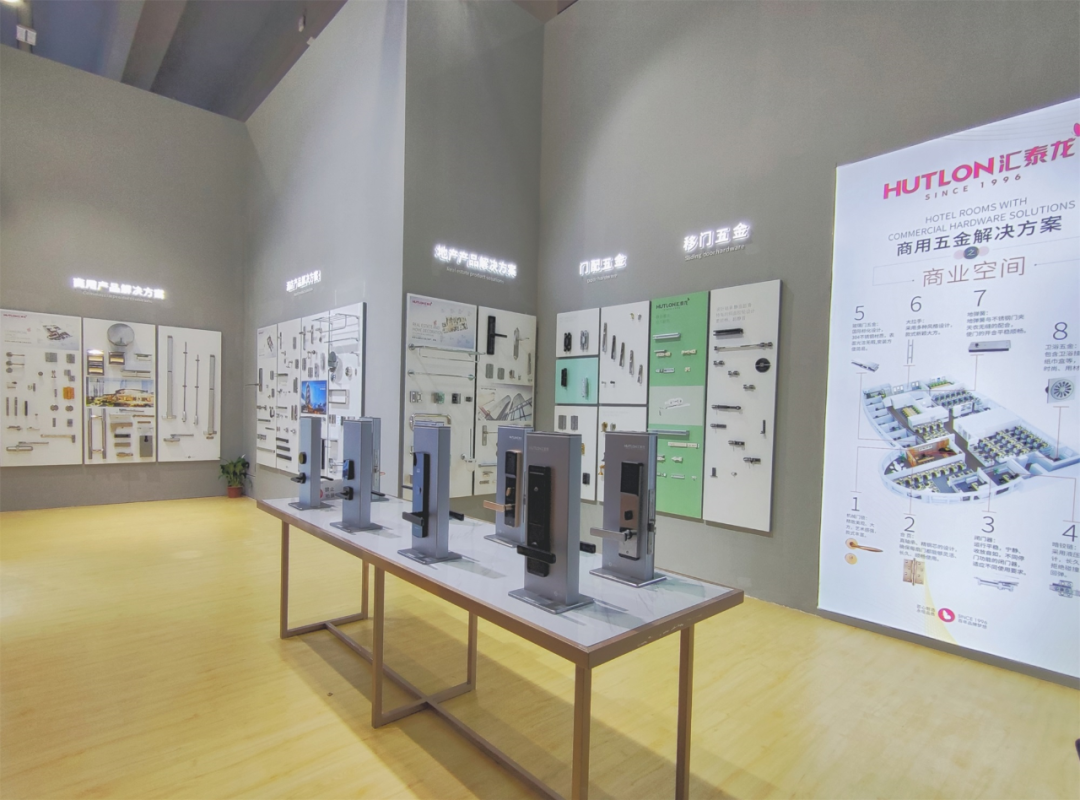 匯泰龍展館的商用五金專區(qū),詳盡地展示了商業(yè)解決方案、酒店解決方案、地產(chǎn)解決方案三大方案,并精選出下游工程客商最為關(guān)注的玻璃門五金、門控五金、移門五金等專項(xiàng)解決方案進(jìn)行展示。