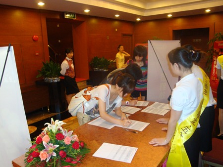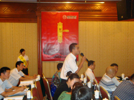 7月7日上午8:00,廣州華夏大酒店三樓會(huì)議廳內(nèi)一片喜慶的景象。紅色的地毯、紅色的匯泰龍主題背景、紅色的文化宣傳畫交相輝映,把整個(gè)會(huì)議廳的氣氛渲染得熱烈而喜慶。走進(jìn)會(huì)議廳內(nèi),三百個(gè)擺放整齊的座位,無一虛席,大型的主題背景上赫然印著“匯泰龍門店銷售與管理技巧培訓(xùn)”的主題大字。匯泰龍全國(guó)經(jīng)銷商大型培訓(xùn)正在此舉行。