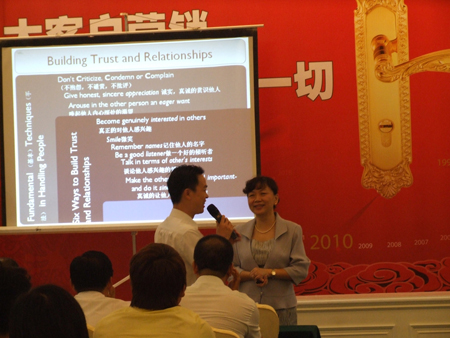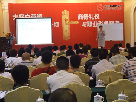 此次培訓(xùn)由匯泰龍公司主辦,長沙立恒裝飾材料公司協(xié)辦,在長沙明城國際大酒店的白宮廳如期舉行,此次培訓(xùn)依然邀請(qǐng)了知名企業(yè)培訓(xùn)講師、卡耐基授權(quán)講師(IOWA)、美國禮儀協(xié)會(huì)海外會(huì)員
