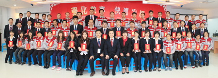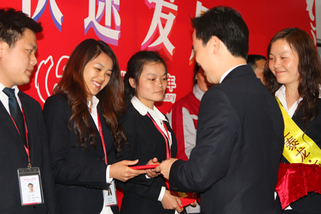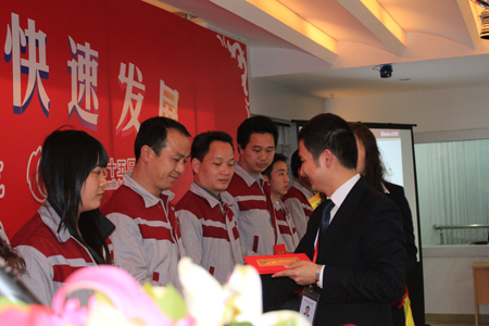 董事長和總經(jīng)理發(fā)言后,在此次開工大會上對2010年度評選出的優(yōu)秀員工和執(zhí)行力標兵頒發(fā)了榮譽證書和獎勵。本次共評選出執(zhí)行力標兵15人,優(yōu)秀員工49人,由董事長和總經(jīng)理分別對獲獎人員頒發(fā)榮譽證書。