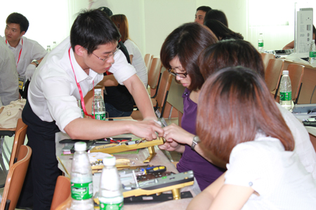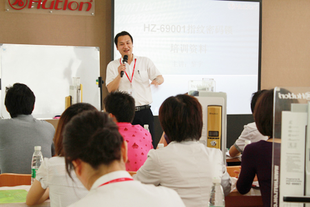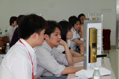 此次的培訓(xùn)分為多個板塊,分別為:智能鎖市場分析;匯泰龍新產(chǎn)品介紹;操作使用;安裝與調(diào)試;售后服務(wù)。培訓(xùn)采用幻燈片演示以及現(xiàn)場實操演練相結(jié)合,直觀地再現(xiàn)了匯泰龍智能電子門鎖內(nèi)部結(jié)構(gòu)和性能特點,從大家的自由的討論中總結(jié)匯泰龍新款智能電子鎖的優(yōu)勢:360度指紋識別、啟動時間不到1秒、時尚的產(chǎn)品外觀設(shè)計、雙核雙電路設(shè)計等,在實操部分,大
