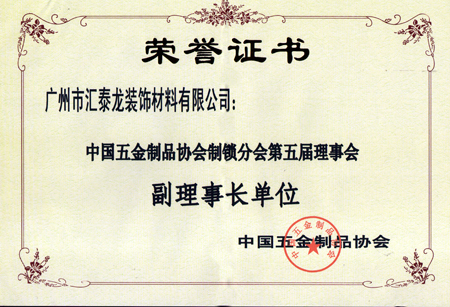 —匯泰龍榮獲“中國五金制品協(xié)會制鎖分會第五屆理事會副理事長單位”榮譽