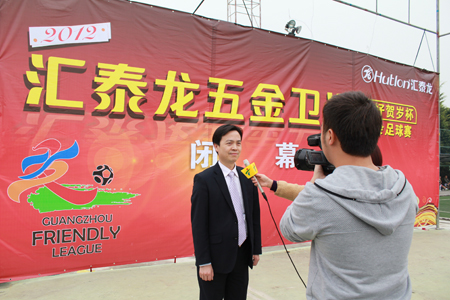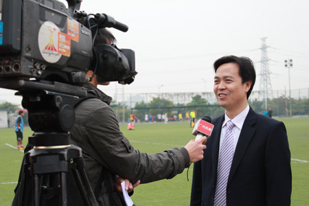 陳董到球賽現(xiàn)場觀戰(zhàn)并接受廣東電視臺《廣州競賽》欄目組專訪