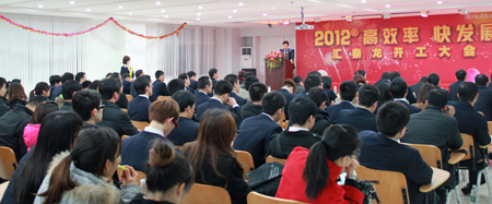 在開工大會上,首先由總經理徐振忠先生發(fā)表講話。徐總利用非常嚴謹、詳盡的統(tǒng)計數據總結了十七項匯泰龍公司2011年在內部管理、大型商務營銷活動、營銷渠道和營銷網絡建設、品牌建設、財務管理、供貨及研發(fā)能力進一步提高等各個方面取得的成績。同時,徐總也從數據的演示中客觀地指出了公司2011年發(fā)展過程中一部分不足 ,也帶領大家對各項不足的項目進行了非常深入和實際的原因分析,對大家在新的一年發(fā)揚成績、改進不足提供了明確的方向和嚴格的要求。接著,徐總在講話中提出了匯泰龍公司2012年整體的工作計劃,提出了以業(yè)績增長為核心,以目標達成為手段,營銷管理、科技創(chuàng)新、優(yōu)化管理并駕齊驅的管理模式。在2012年管理模式下,在新的起點、新的目標、新的環(huán)境下,公司和徐總對各個職能部門的全體管理人員提出了新的要求和期望,提出了具體的可量化考核的目標。