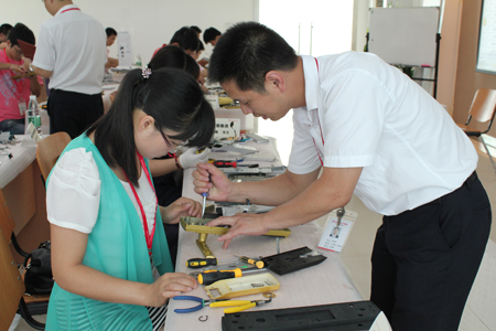本次培訓(xùn)主講為公司電子鎖事業(yè)部黎宇先生,課程內(nèi)容有智能鎖市場(chǎng)分析;匯泰龍智能電子鎖介紹;操作使用;安裝與調(diào)試;售后服務(wù)。由于參與本次集訓(xùn)的人員多為一線銷售人員及售后安裝服務(wù)人員,所以本次的培訓(xùn)著重于介紹產(chǎn)品內(nèi)部結(jié)構(gòu)原理,讓學(xué)員更深入地了解電子鎖構(gòu)造和工作原理。所有學(xué)員均配備一把實(shí)習(xí)專用電子鎖,現(xiàn)場(chǎng)跟隨培訓(xùn)講師把一把完整的電子鎖拆裝成零星的小部件,再重裝還原。培訓(xùn)采用幻燈片演示以及現(xiàn)場(chǎng)實(shí)操演練相結(jié)合,直觀地再現(xiàn)了匯泰龍智能電子門鎖內(nèi)部結(jié)構(gòu)和性能特點(diǎn),從大家的自由的討論中總結(jié)匯泰龍新款智能電子鎖的優(yōu)勢(shì),在實(shí)操部分,大家按老師所教的步驟自由拆裝鎖體,對(duì)鎖的操作和內(nèi)部結(jié)構(gòu)有了更加詳細(xì)的了解,讓大家更加深刻了解了新產(chǎn)品的特性。此次培訓(xùn)從裝配、安裝、到調(diào)試、售后服務(wù)都從“品質(zhì)造就滿意”出發(fā),目的在于為廣大的消費(fèi)者提供最優(yōu)質(zhì)的產(chǎn)品品質(zhì)、最先進(jìn)的營(yíng)銷品質(zhì)、最完善的服務(wù)品質(zhì)。為了及時(shí)檢驗(yàn)培訓(xùn)效果,在培訓(xùn)結(jié)束后,進(jìn)行了嚴(yán)格的實(shí)操考試,對(duì)培訓(xùn)合格的人員頒發(fā)了《匯泰龍智能電子鎖培訓(xùn)合格證書》。
