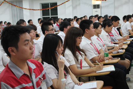 在本次的企業(yè)文化培訓(xùn)大會上,陳董主要分三大內(nèi)容展開講述:1.匯泰龍企業(yè)文化和營銷文化;2.匯泰龍企業(yè)發(fā)展歷史;3.匯泰龍企業(yè)愿景。在第一部分,陳董首先用一個有趣的故事講述了“匯泰龍”名字的來歷,接著由淺入深,講述了企業(yè)理念“品質(zhì)造就滿意”的深刻含義以及對一個企業(yè)發(fā)展的意義,講到龍標(biāo)的來歷的時候,在場的同事們對“龍標(biāo)”的三種設(shè)計理念的完美藝術(shù)結(jié)合贊嘆不已。陳董在講述這些企業(yè)文化核心的時候,都會加入一些歷史故事,特別是在講到公司三次VI升級的時候,通過非常直觀的演示圖表現(xiàn)了匯泰龍發(fā)展十六年公司實(shí)力、產(chǎn)品定位、企業(yè)愿景的內(nèi)容。在最后的企業(yè)愿景部分,陳董向大家講述了未來5-10年的企業(yè)發(fā)展方向,包括企業(yè)規(guī)模、企業(yè)硬件設(shè)施的建設(shè)、員工發(fā)展等方面的內(nèi)容,構(gòu)造了公司更加宏偉的發(fā)展藍(lán)圖。