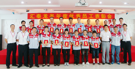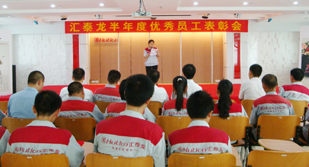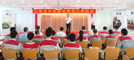 7月20日,匯泰龍佛山南海生產(chǎn)基地辦公樓五樓會(huì)議廳聲樂交響、燈火通明,匯泰龍2012年度第二季度優(yōu)秀員工(七級(jí)員工)表彰大會(huì)隆重召開。公司人事行政中心總監(jiān)任志平先生、制造中心生產(chǎn)管理部經(jīng)理張祖林先生、各車間主任及優(yōu)秀員工到會(huì),會(huì)議上任總監(jiān)首先發(fā)表了講話,他在演講中提到,一個(gè)優(yōu)秀的企業(yè)離不開每一個(gè)優(yōu)秀的團(tuán)隊(duì),優(yōu)秀的團(tuán)隊(duì)的品質(zhì)必須由每一位優(yōu)秀品質(zhì)的員工才能體現(xiàn),受表彰的幾位優(yōu)秀員工在平凡的崗位上兢兢業(yè)業(yè),足以成為匯泰龍人學(xué)習(xí)的榜樣,接著他宣讀了《2012年度第二季度優(yōu)秀員工名單》,公司領(lǐng)導(dǎo)對(duì)這些經(jīng)民主投票評(píng)選出的優(yōu)秀員工進(jìn)行頒發(fā)榮譽(yù)證書并進(jìn)行表彰,獲獎(jiǎng)員工覃云清、李登芳代表全體優(yōu)秀員工發(fā)言,最后,所有嘉賓與優(yōu)秀員工合影留念。表彰大會(huì)氣氛熱烈,在圓滿完成會(huì)議議程之后,表彰大會(huì)隆重閉幕。