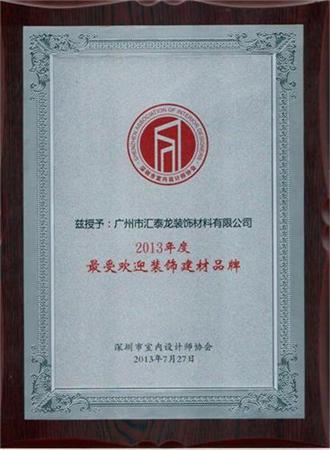 匯泰龍公司榮獲“2013年度最受歡迎裝飾建材品牌”稱號