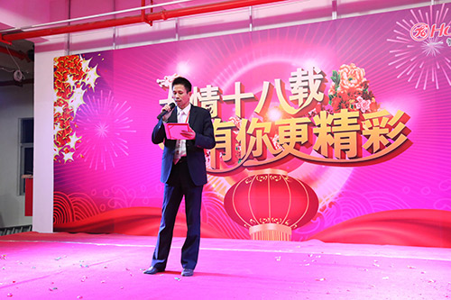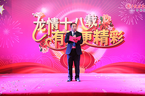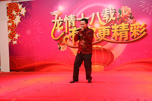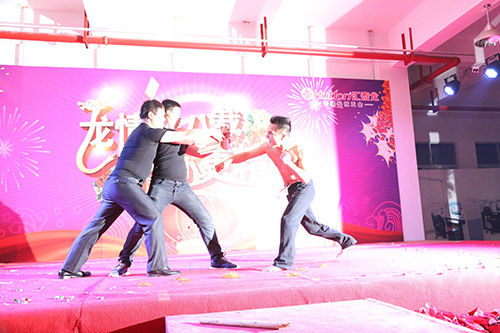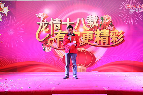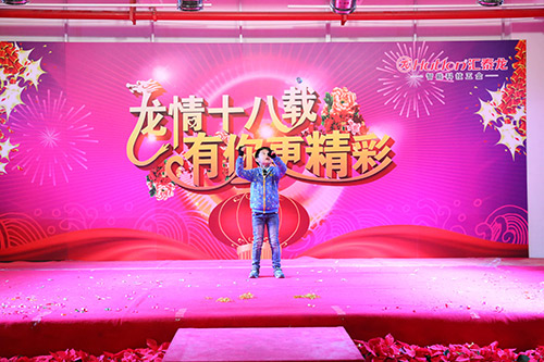 在四位主持人的引導下,陳董上臺發(fā)表新年賀辭,他首先向大家總結了我們在2014年取得的成績,對一年來全體匯泰龍人的付出和努力表示感謝,同時,他指出2014年受房地產行業(yè)的影響,整個家居建材行業(yè)都很嚴峻,我們匯泰龍公司全體同仁齊心協心仍然取得了一定的成績。面對2015年,我們通過轉型、一系列變革等措施,一定會繼續(xù)發(fā)力,再創(chuàng)匯泰龍的輝煌。最后,他熱情洋溢地表達了對在場所有員工和員工家人新年的祝福,在場的員工深受鼓舞,報以雷鳴般的掌聲。