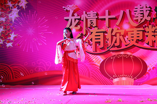 整場晚會節(jié)目豐富多彩,包含:歌唱類、小品類、舞蹈類、戲劇類、紀錄片播放、公司宣傳片播放、賀歲VCR《逐夢》播放,市場一部的趙旭煌的硬氣功表演、人事行政部的《開會》、市場一部的陳文珊《爵士舞》、特約小嘉賓楊陽的《玩轉悠悠球》等節(jié)目得到了現場觀眾的陣陣喝彩。
