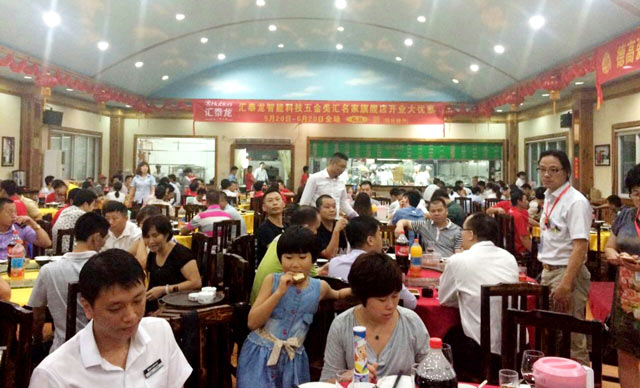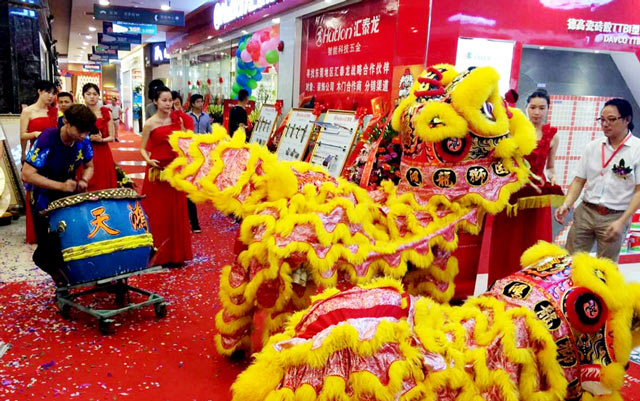 金獅生輝意融融,妙筆點睛展雄姿。經(jīng)銷商鄔湘萍女士、聶云安先生共同為舞獅進行點睛,金色雙獅進行獅舞表演,惹的現(xiàn)場熱鬧非凡。匯泰龍智能科技五金東莞長安專賣店正式開業(yè)迎賓。在活動現(xiàn)場,還舉辦了現(xiàn)場砸金蛋、贏取電冰箱、大彩電、電風扇等助興活動。開業(yè)當天全場6.8折更是賺足了人氣。