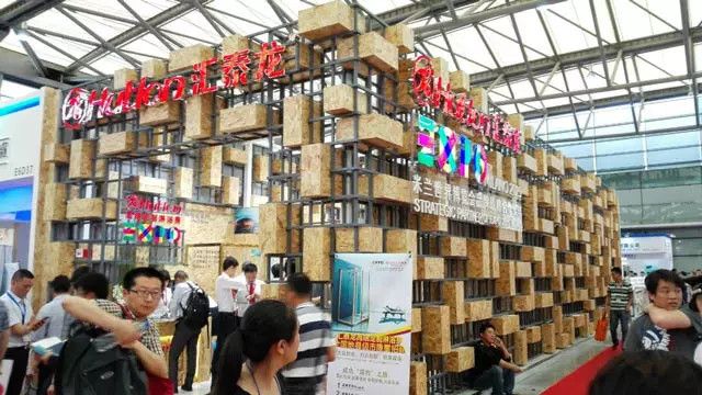 進(jìn)入E6館,一個(gè)碩大的由原木盒子構(gòu)成的主題展館吸引了客戶(hù)的眼球,公司的LOGO與2015年米蘭世博會(huì)色彩標(biāo)志相映成輝。十幾款精致的淋浴房巧妙地展示在展館內(nèi),原木色的墻壁,燈光從木盒子的縫隙中透射出來(lái),投影在晶瑩的玻璃上。呼吸著木頭的香味,仿佛身處在初春晌午的森林中,這個(gè)就是匯泰龍上海廚衛(wèi)展“龍·自在”館。