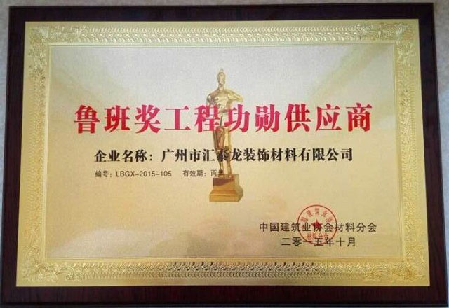 經(jīng)過經(jīng)自愿申報、用戶確認、審核初評、專家審定、網(wǎng)上公示等一系列嚴格的程序,匯泰龍公司被授予“2015年度魯班獎工程功勛供應(yīng)商”榮譽稱號。