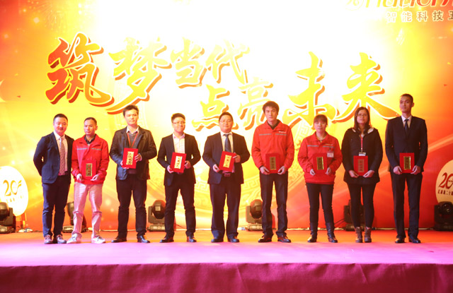 為慶祝公司二十周年,本次晚會首次評出12名“感動匯泰龍人物”,匯泰龍公司陳董、陳太為獲獎員工頒發(fā)榮譽證書和獎品“64G香檳金Iphone6S”。