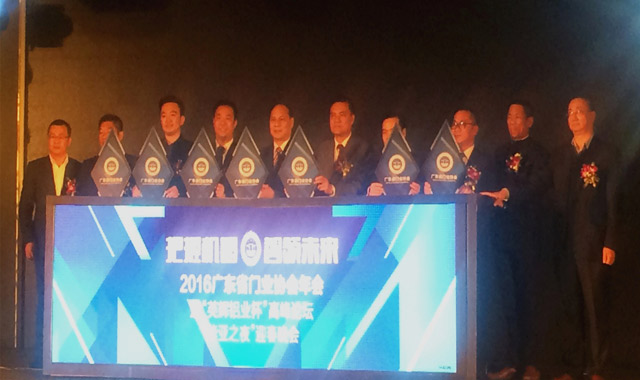 總經(jīng)理徐振忠先生代表匯泰龍接受《廣東省門業(yè)優(yōu)秀配材與機械》榮譽頒獎