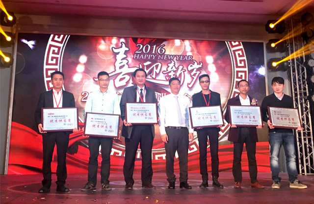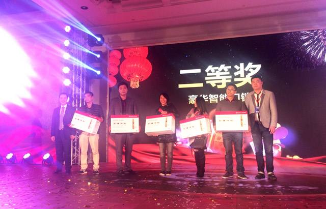在接下來的優(yōu)質供應商頒獎儀式上,憑借優(yōu)秀的產(chǎn)品品質和極高的市場美譽度,匯泰龍榮獲廣東省門業(yè)《優(yōu)秀配材與機械》、《優(yōu)秀供應商》光榮稱號。晚宴開始后,伴隨著精彩節(jié)目的推進,當晚進行了激動人心的抽獎環(huán)節(jié),禮品種類豐富,匯泰龍公司贊助的精美豪華智能鎖獎品,給獲獎嘉賓帶去了時尚、高端、智能的科技體驗。