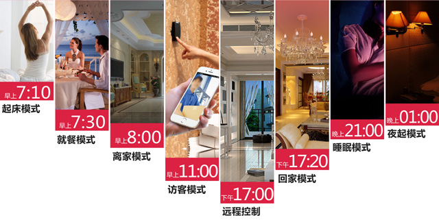 晚餐時(shí)間到啦,媽媽把最后一道菜做完時(shí),輕觸一下就餐模式,餐廳的燈光自動(dòng)亮起(會(huì)根據(jù)家中的光線強(qiáng)弱,自動(dòng)調(diào)整亮度,即節(jié)能又舒適),就餐輕音樂響起,為你和你的家人營(yíng)造一個(gè)愉快的就餐環(huán)境;