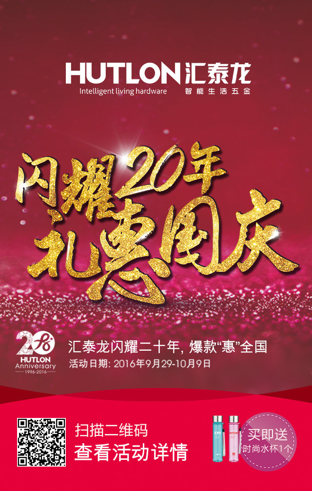 匯泰龍為答謝廣大消費(fèi)者而推出的“閃耀20年·禮惠國(guó)慶”促銷活動(dòng)正式開(kāi)始啦!國(guó)慶期間(2016年9月29日—10月9日),匯泰龍與國(guó)同慶,爆款"惠"全國(guó)、歡樂(lè)齊分享!