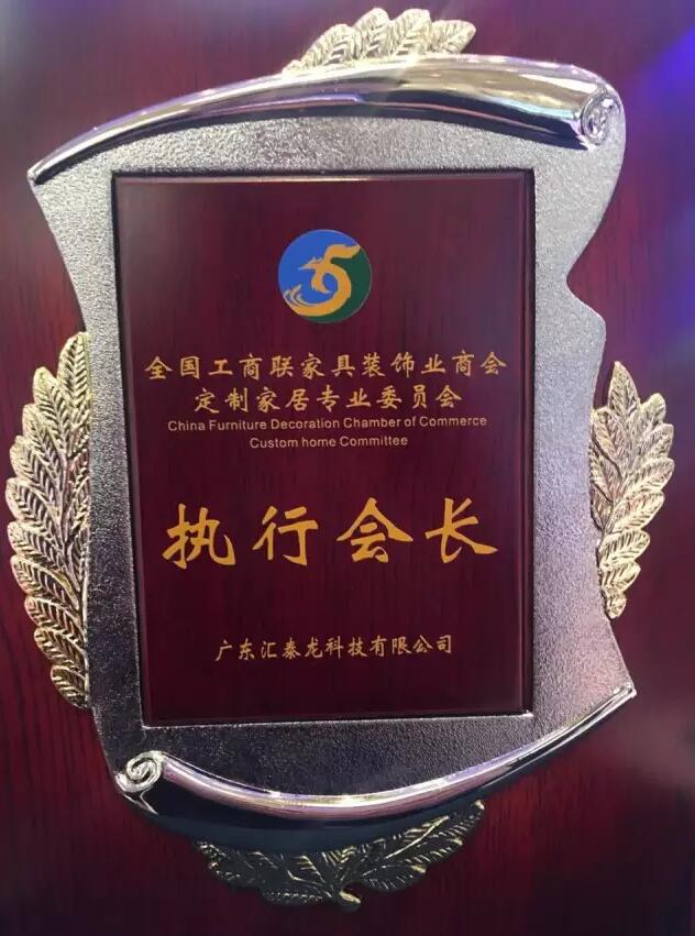 匯泰龍當(dāng)選“全國(guó)工商聯(lián)家具裝飾商會(huì)定制家居專委會(huì)執(zhí)行會(huì)長(zhǎng)”單位
