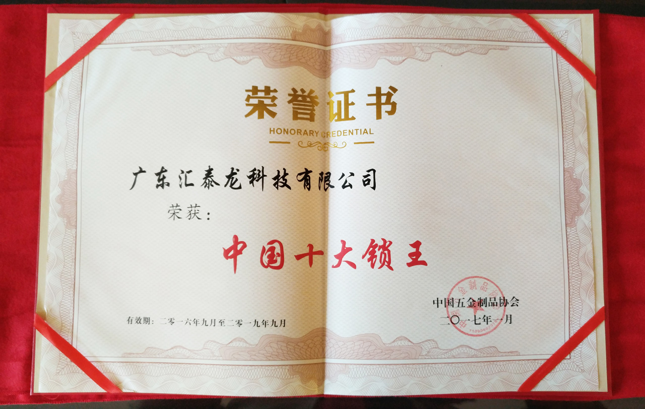 “中國十大鎖王”、“中國智能鎖知名品牌”的評選,歷經層層選拔,要求嚴格,考核質量指標和市場占有率指標,產品質量要處于國內領先地位,市場占有率、品牌知名度、產品開發(fā)能力等居鎖具行業(yè)前列,能獲選“中國十大鎖王”和“中國智能鎖知名品牌”,是對匯泰龍在鎖具行業(yè)的影響力、鎖具產品的綜合實力的絕對認可。