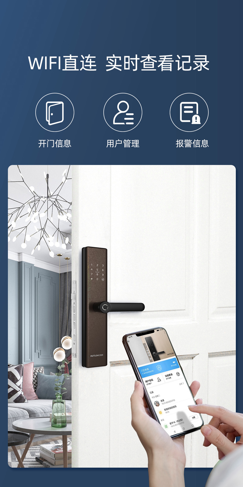 聯(lián)網(wǎng)功能;APP可實時顯示開鎖、報警等信息,可遠程生成臨時密碼開鎖,門鎖用戶管理與設置等操作,更加安全、人性化與便捷;