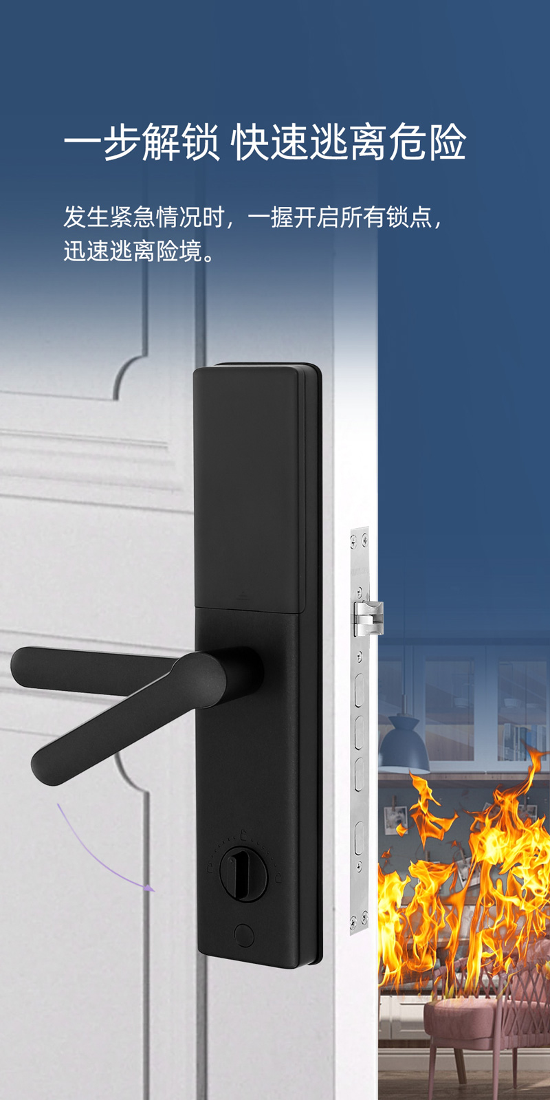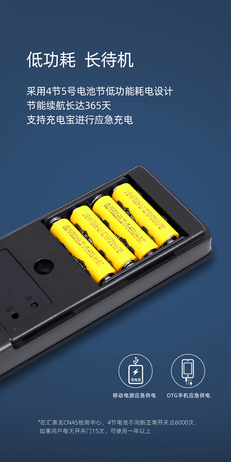支持指紋、密碼、感應卡、機械鑰匙四合一開鎖方式;