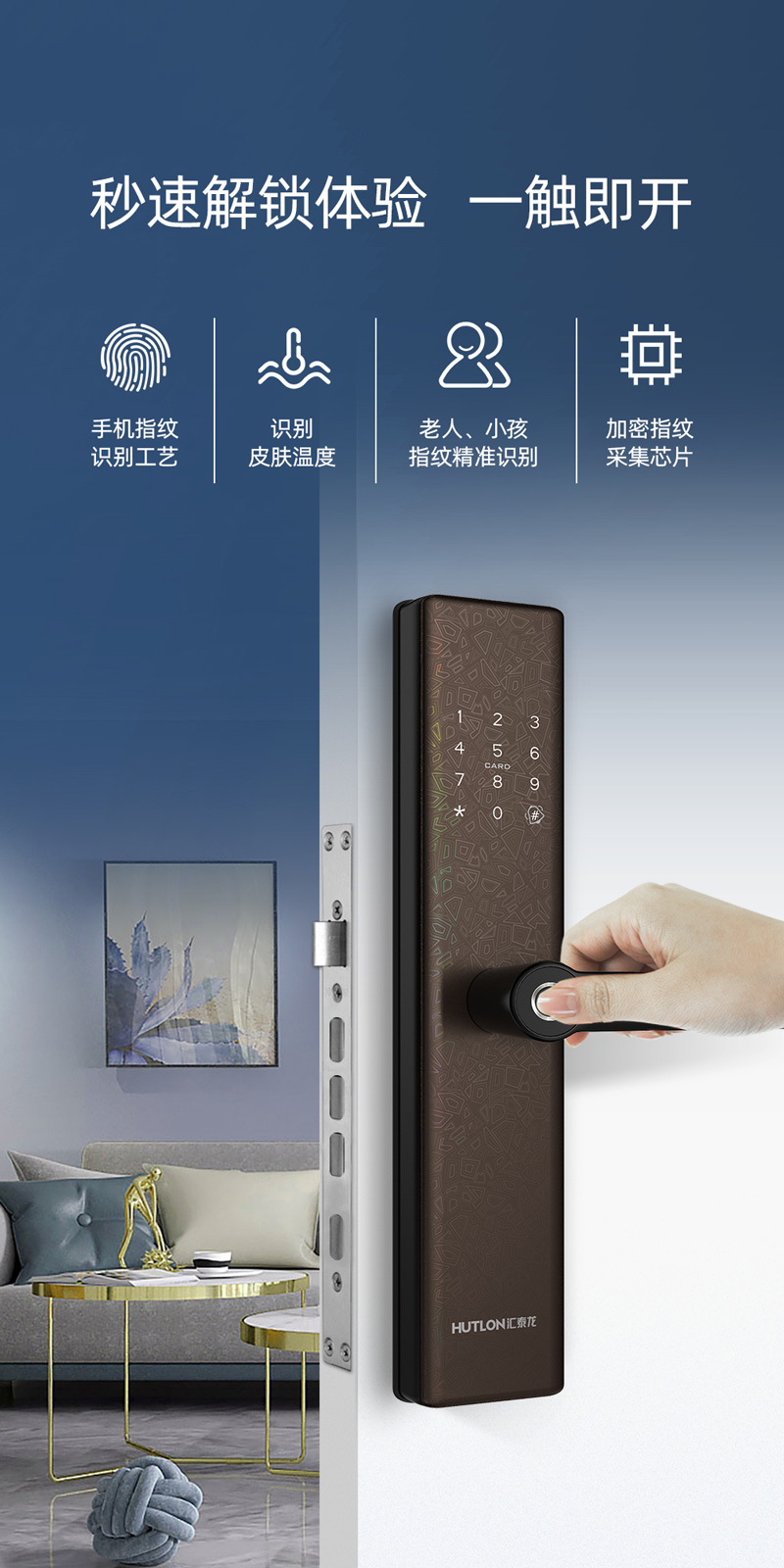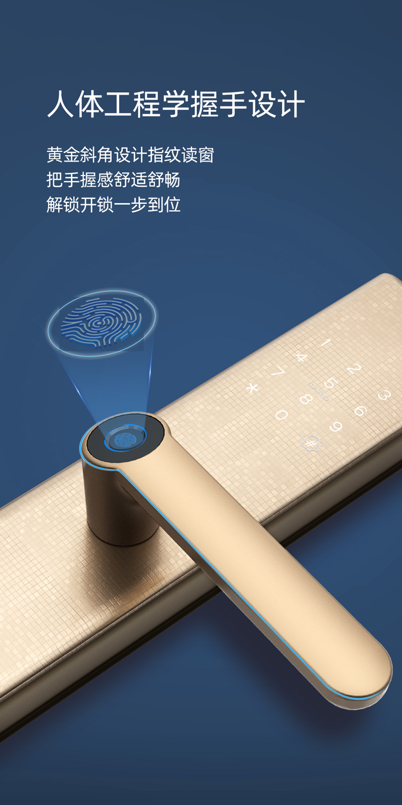 .半導體指紋頭設計在把手上,識別率高,識別速度快,指紋識別和下壓把手一步開門
