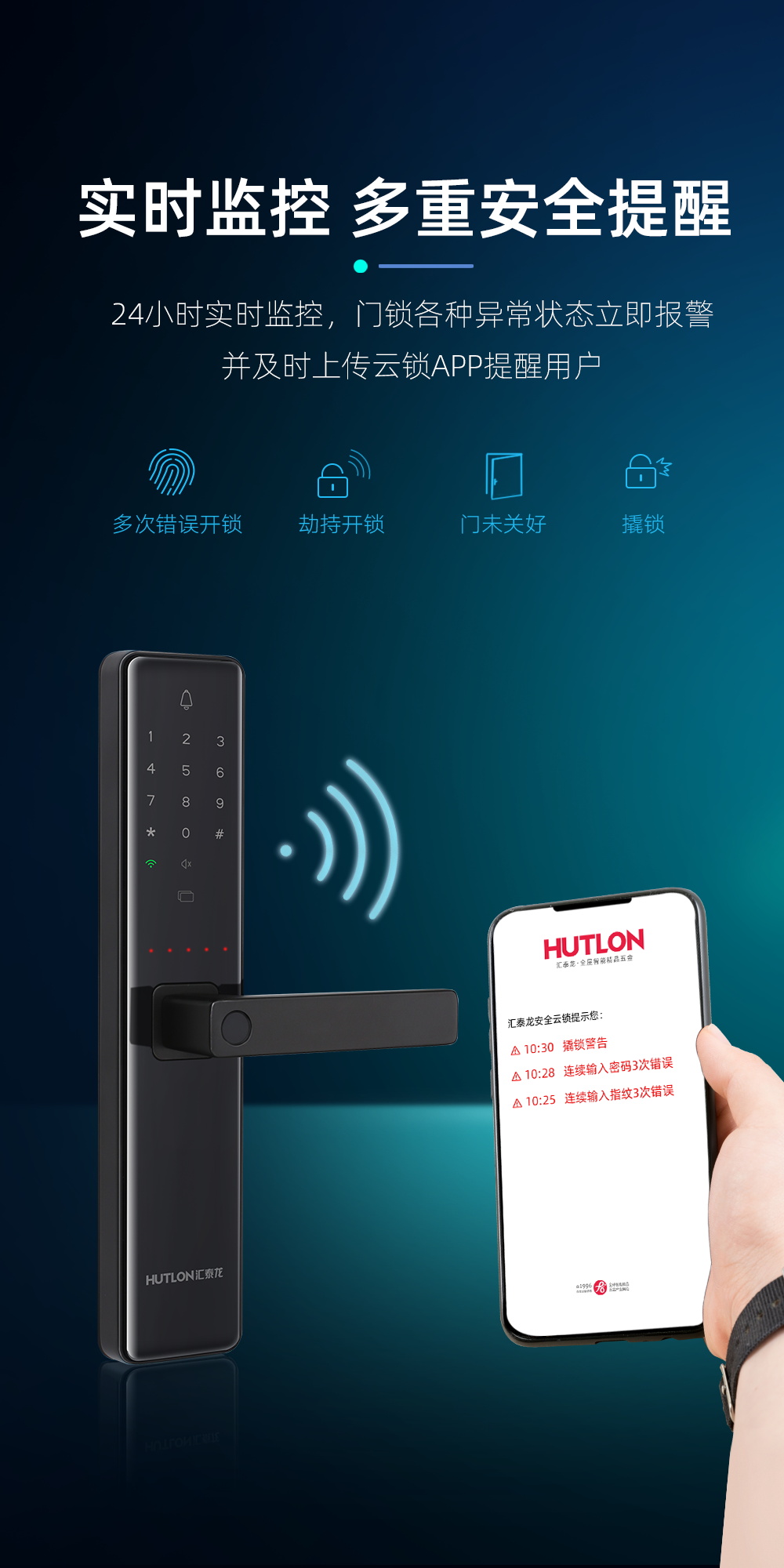 聯(lián)網(wǎng)功能;APP可實(shí)時(shí)顯示開(kāi)鎖、報(bào)警等信息,可遠(yuǎn)程生成臨時(shí)密碼開(kāi)鎖,門(mén)鎖用戶(hù)管理與設(shè)置等操作,更加安全、人性化與便捷;