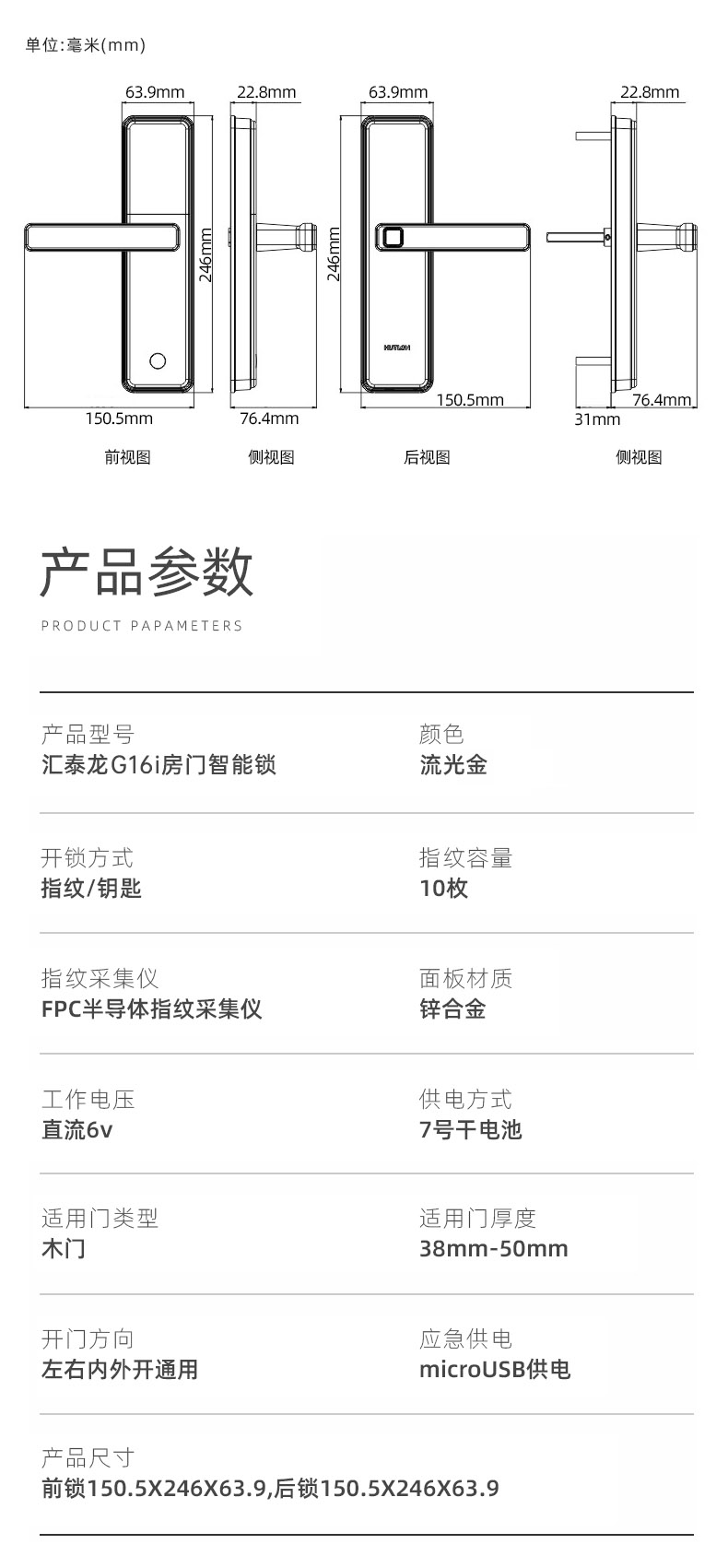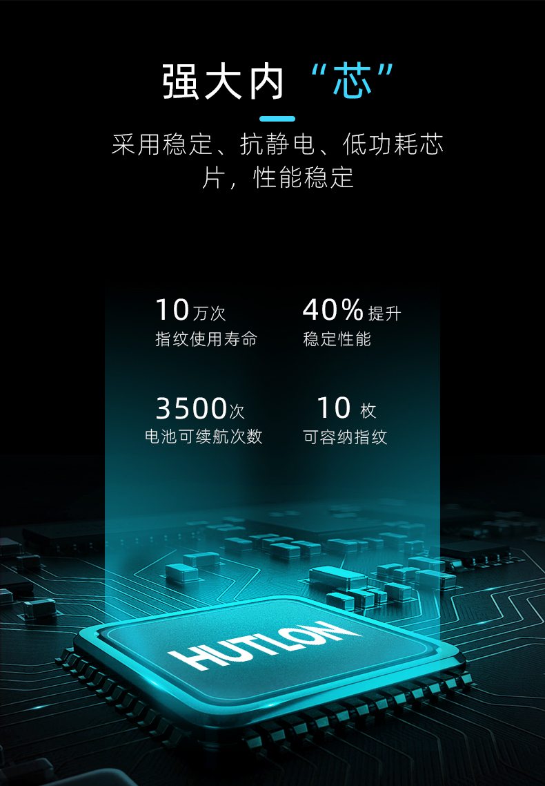 1. 把手指紋設(shè)計(jì),采用瑞典FPC生物識(shí)別傳感器,一體化帶燈光提示指紋讀頭設(shè)計(jì),極速識(shí)別開鎖快人一步;