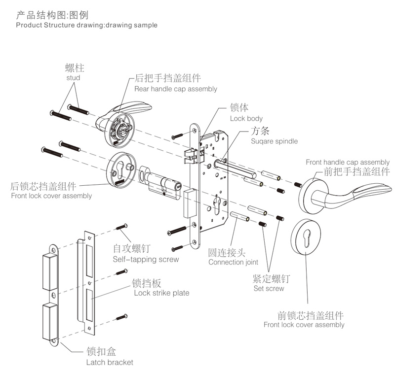 6擰緊螺釘,安裝扣板及扣盒,對齊鎖體,應使鎖舌與之配合順暢,擰緊螺釘(如上圖:H)。