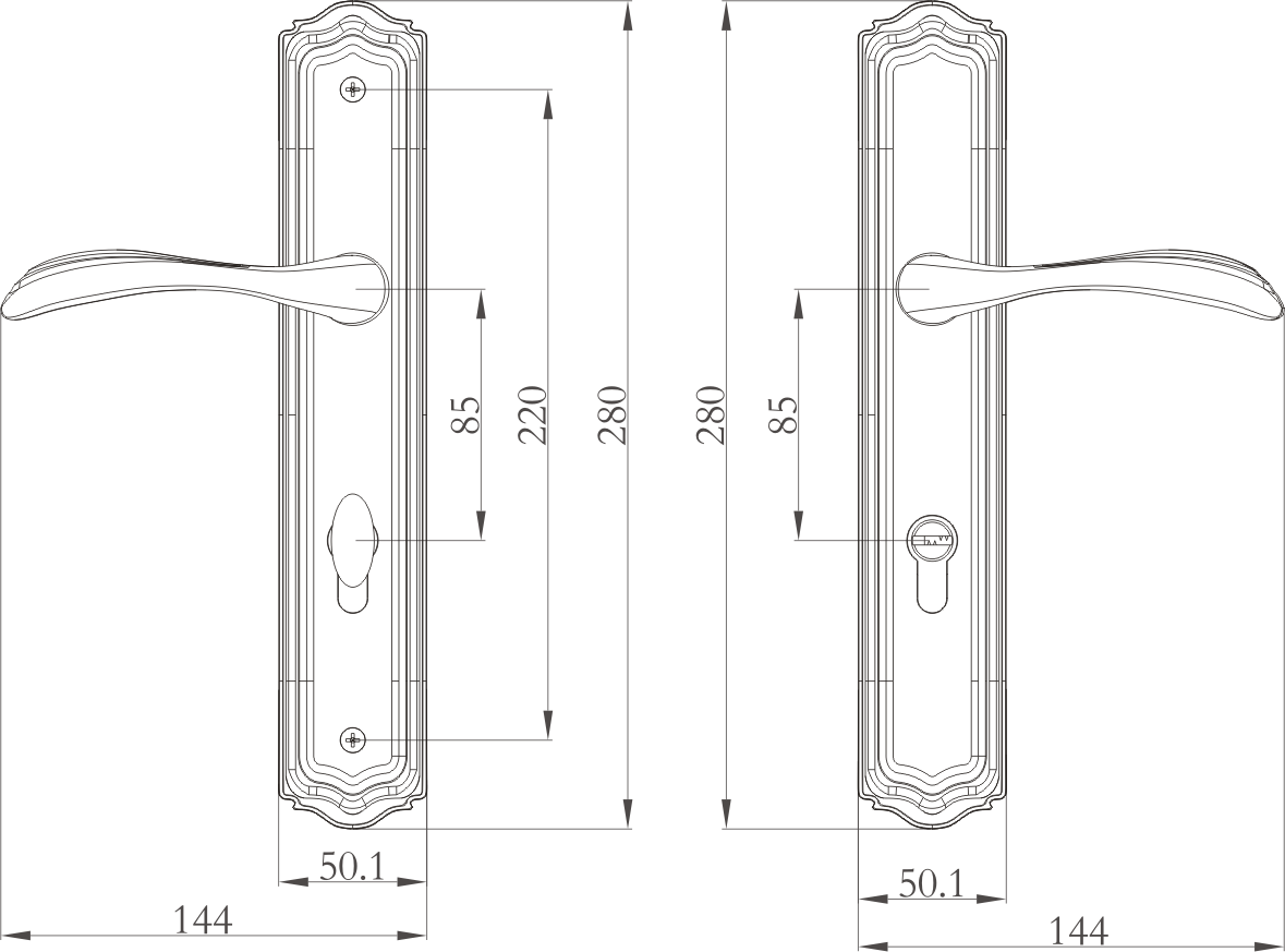 4安裝內外面板,使把手轉動順:擰緊螺釘(如上圖:E-F)。