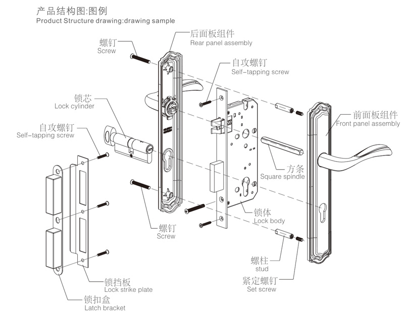 6擰緊螺釘,安裝扣板及扣盒,對齊鎖體,應使鎖舌與之配合順暢,擰緊螺釘(如上圖:H)。