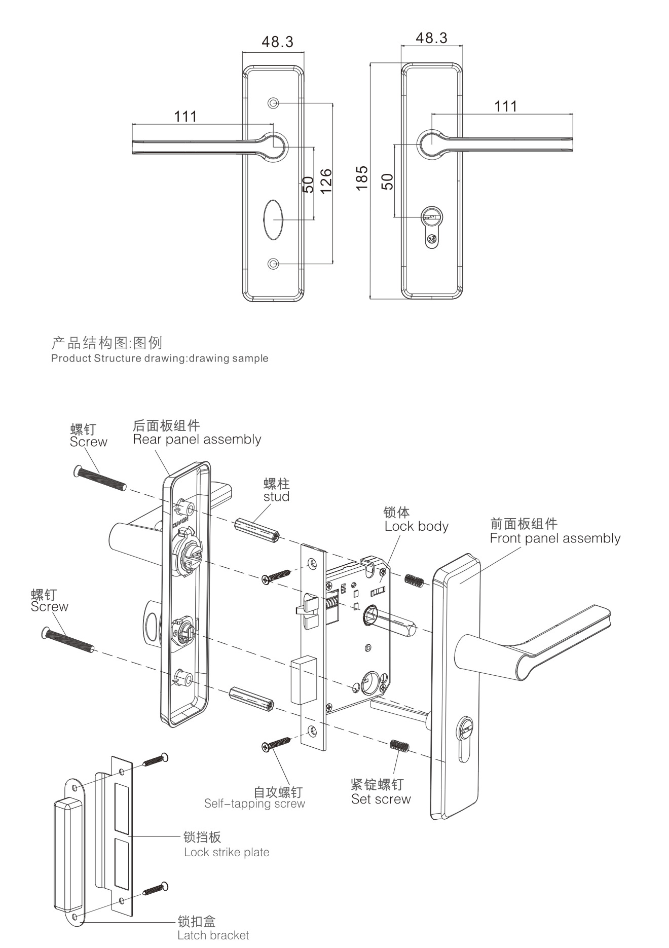 6擰緊螺釘,安裝扣板及扣盒,對(duì)齊鎖體,應(yīng)使鎖舌與之配合順暢,擰緊螺釘(如上圖:H)。
