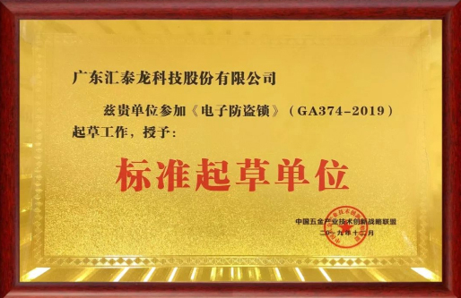 匯泰龍參與國(guó)家、行業(yè)標(biāo)準(zhǔn)制定等各項(xiàng)標(biāo)準(zhǔn)近30項(xiàng),是智能鎖行業(yè)標(biāo)準(zhǔn)《電子防盜鎖》(GA 374-2019)等標(biāo)準(zhǔn)的主要起草單位,為行業(yè)規(guī)范化發(fā)展助力。