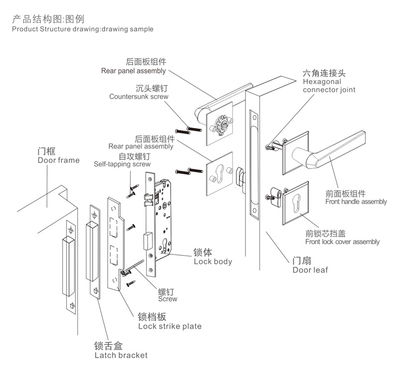 6擰緊螺釘,安裝扣板及扣盒,對(duì)齊鎖體,應(yīng)使鎖舌與之配合順暢,擰緊螺釘(如上圖:H)。