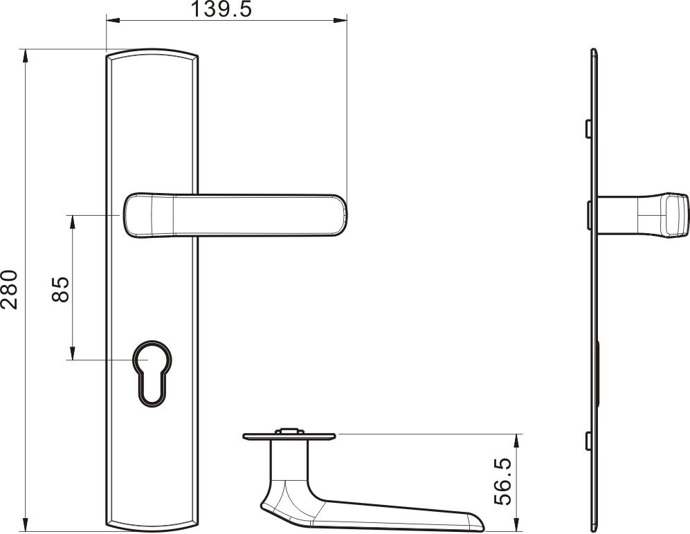 4安裝內(nèi)外面板,使把手轉(zhuǎn)動順:擰緊螺釘(如上圖:E-F)。